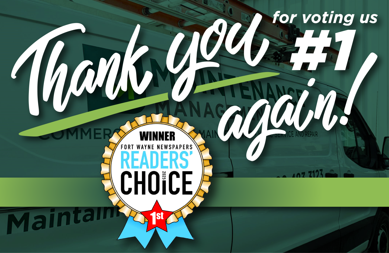 Maintenance Management is proud to announce that we have won Best Business to Business Company in the Fort Wayne Readers’ Choice Awards for the second time.